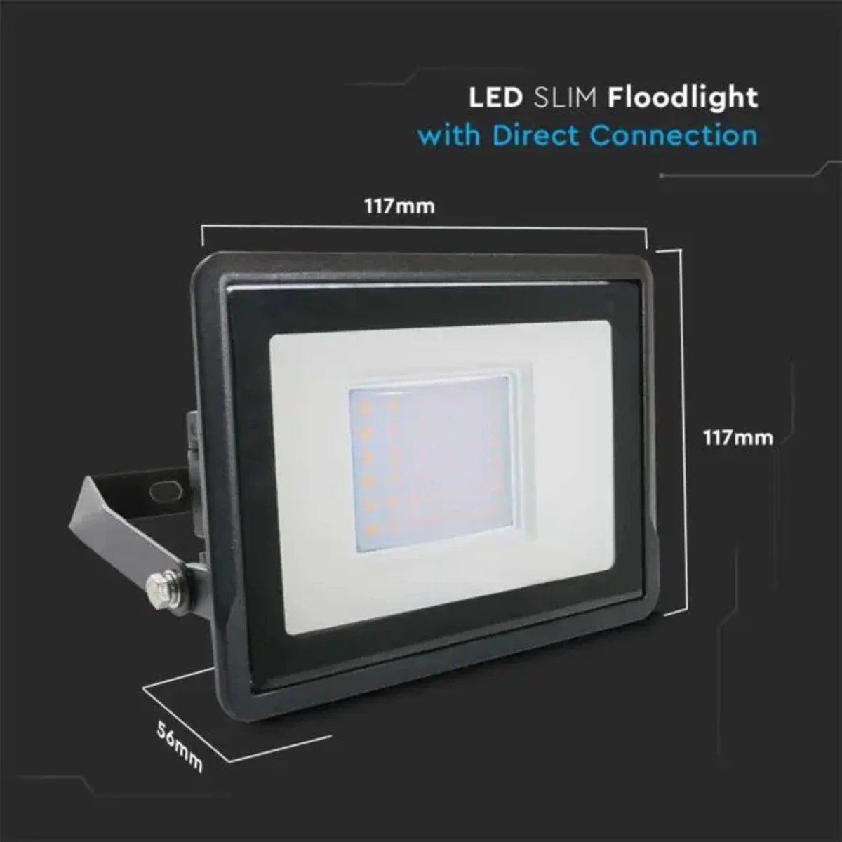 V-Tac’s all-new SMD slim floodlight is manufactured with cutting-edge components to deliver exceptional performance. Together with its new sleek design, its durability and water resistance, the 30W Floodlight presents as extremely sturdy and perfect for outdoor applications. As with all LED lights, floodlight brightness is most accurately measured in Lumens, rather than Watts. For instance, this 30w slimline floodlight will give out the same brightness (2340 lumens) as a 300W halogen floodlight while consuming far less energy. Furthermore, with 25,000 hours/9 years (8-hr usage a day) of average lamp life, this 30W façade light presents the best alternative for traditional halogen floodlights.