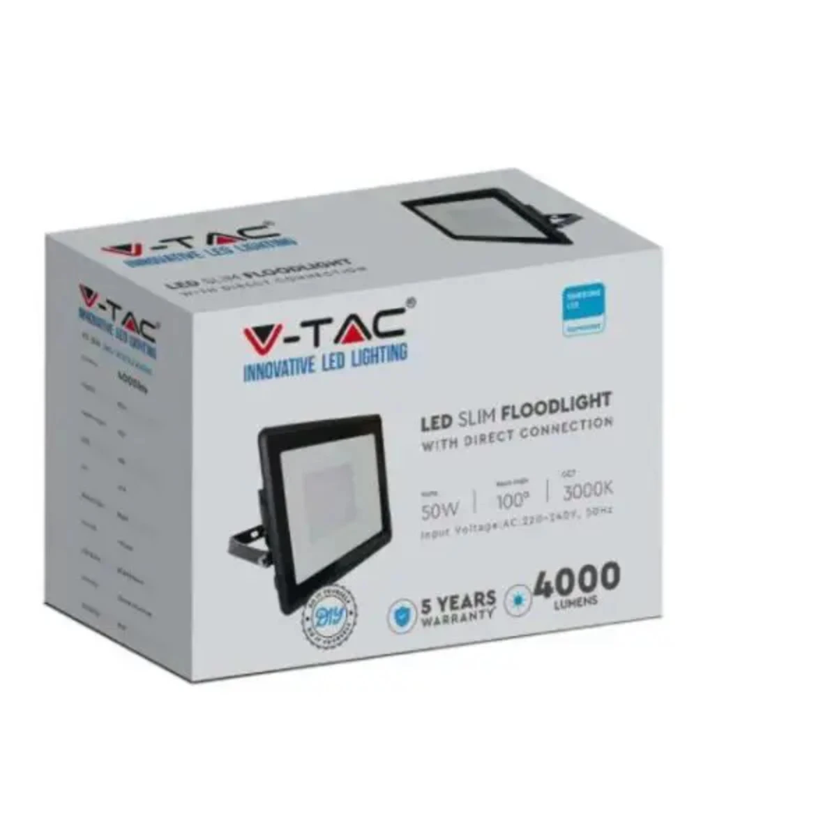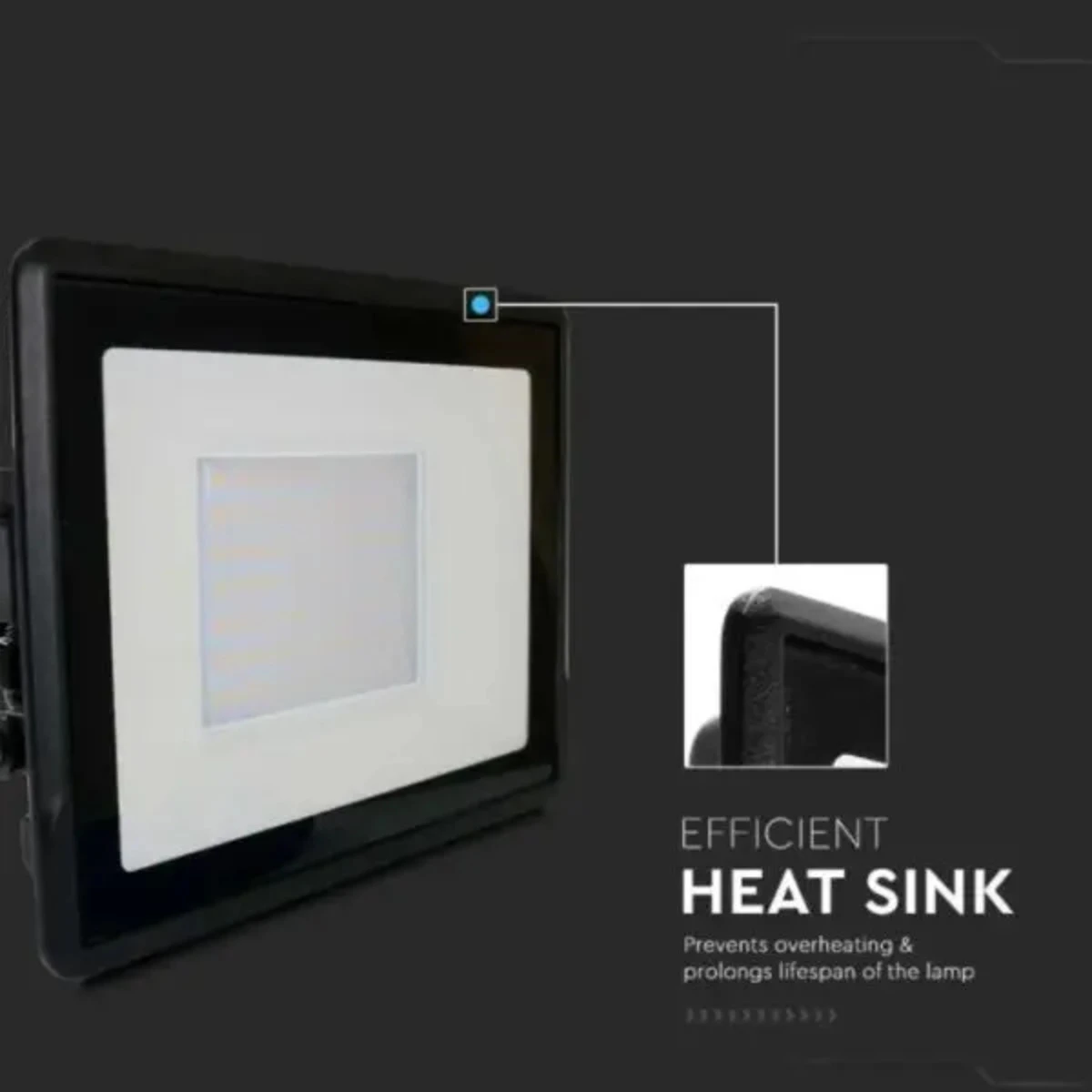 - Wide Beam Angle– The V-Tac’s 50w slimline floodlight features a 100° beam angle. Therefore, it provides excellent lighting conditions and high uniformity across their coverage.