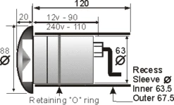 | Installation: | The plastic sleeve is built into the wall during construction or retrofitted into a hole cut with a coring bit: the light pushes into the tube, where it is held firmly in place by an O-ring, leaving a front plate with no visible fixing screws. Suitable drainage should be provided below each fitting to prevent water logging. Waymarkers should not be installed in ground subject to water logging, an IP68 light such as a Neptune Recessed light should be considered. Connect input cable to cable from transformer using T9962 cable joint or T9963 cable splice kit. |