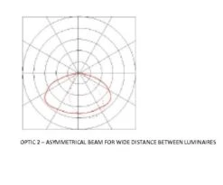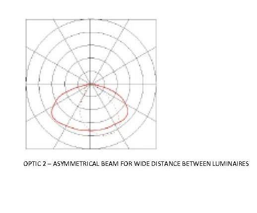 Optic 2 – Asymmetrical beam for wide distance between luminaires.
