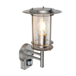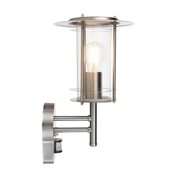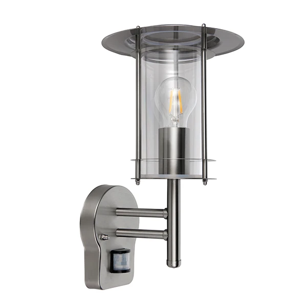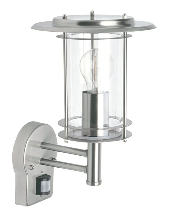 York – 240v – 304 Stainless Steel IP44 E27 Max 60w Wall Light With PIR Motion Sensor