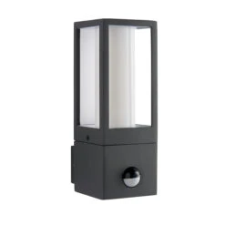 Lantern Grey Textured Aluminium Modern Lantern Wall Light With PIR – 240v GU10 IP44