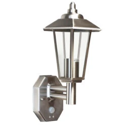 Stellus Contesa PIR Sensor – Outdoor Lantern Wall Light – 240v – 304 Stainless Steel E27 IP44